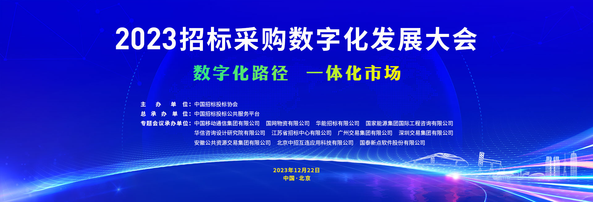 為深入貫徹落實(shí)黨的二十大精神,構(gòu)建高標(biāo)準(zhǔn)市場(chǎng)體系,加快建設(shè)全國(guó)統(tǒng)一大市場(chǎng),深刻認(rèn)識(shí)招標(biāo)采購與數(shù)字經(jīng)濟(jì)融合發(fā)展的戰(zhàn)略趨勢(shì),提升產(chǎn)業(yè)鏈供應(yīng)鏈韌性和安全水平,促進(jìn)招標(biāo)采購行業(yè)數(shù)字化、綠色化、陽光化、標(biāo)準(zhǔn)化發(fā)展,研究探討行業(yè)政策制度和數(shù)字化轉(zhuǎn)型的創(chuàng)新路徑,推動(dòng)招標(biāo)采購高質(zhì)量發(fā)展,中國(guó)招標(biāo)投標(biāo)協(xié)會(huì)(以下簡(jiǎn)稱中招協(xié))定于2023年12月22日在京舉辦招標(biāo)采購數(shù)字化發(fā)展大會(huì)。